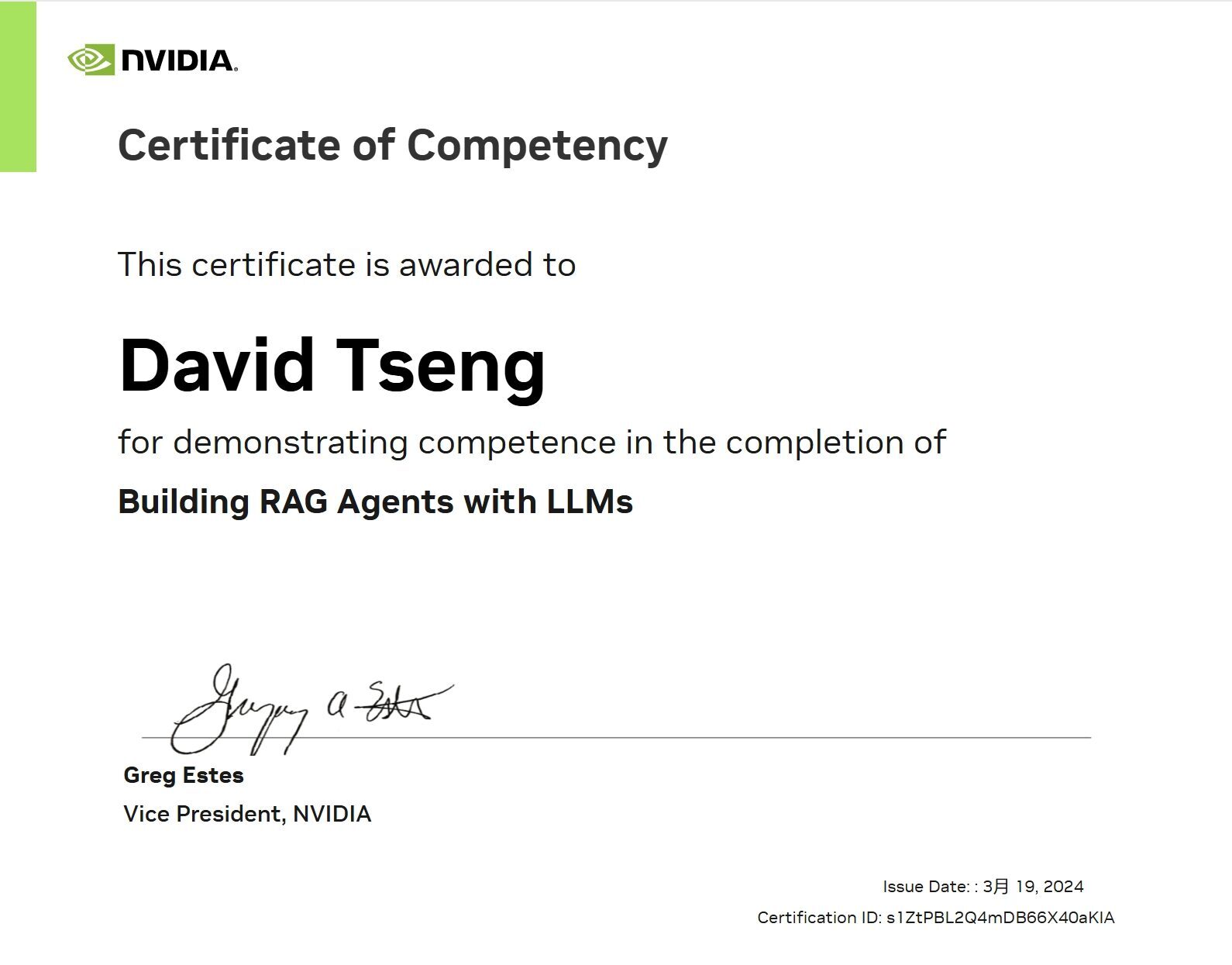 本課程原文名稱為 [Building RAG Agents with LLMs], NVIDIA DLI 目前未提供正體中文版本,相關資訊皆以原廠為準。