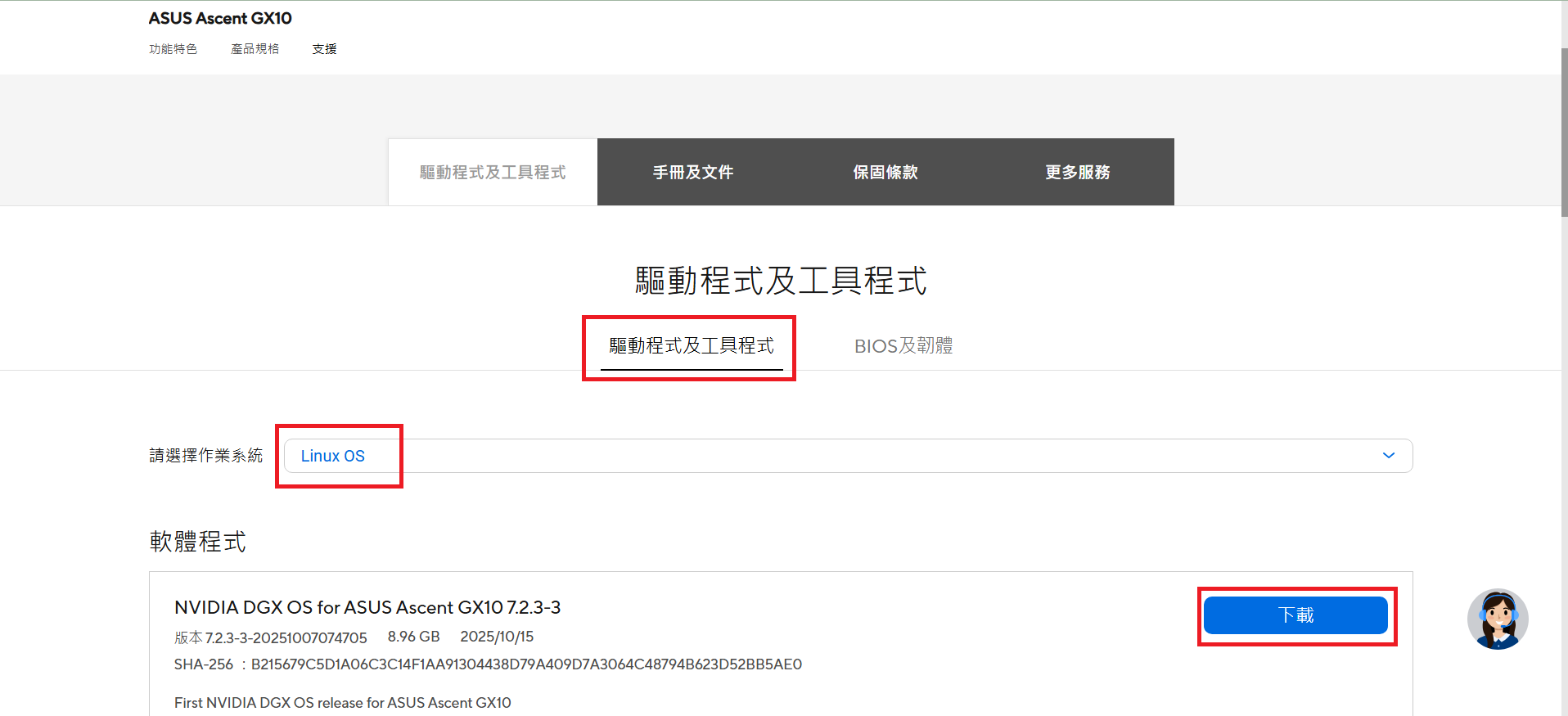 - 下載連結: ASUS Ascent GX10 | 桌上型AI 超級電腦 支援頁面