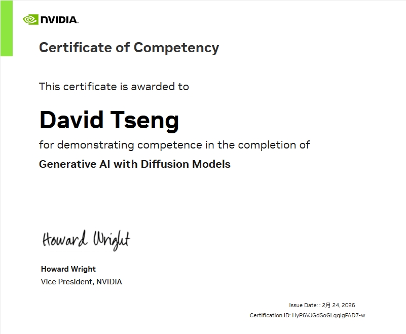 - 完成課程評量並取得 NVIDIA 原廠完課證明