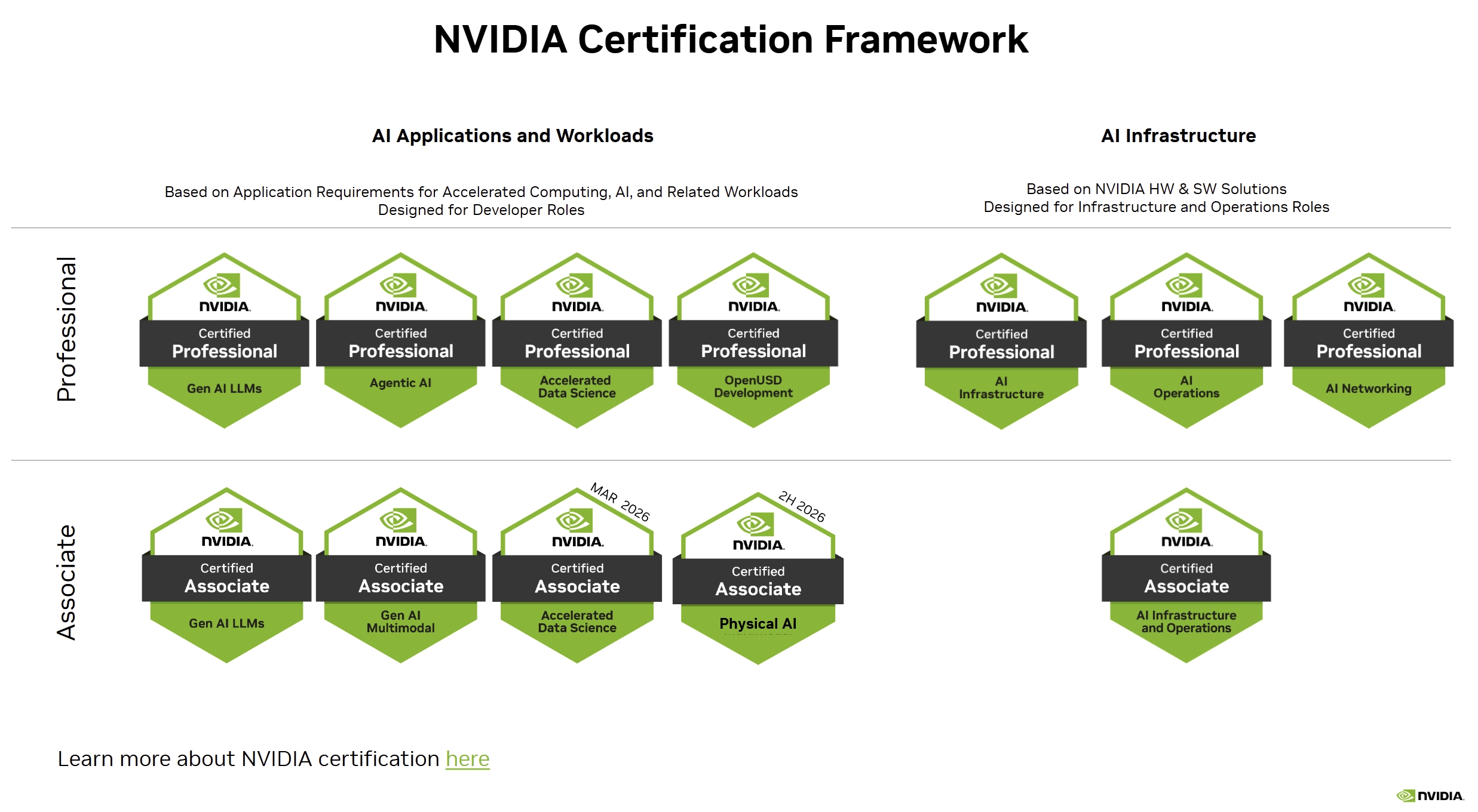 - 💻 基礎設施專業人士 (Infrastructure Professionals): 涵蓋 AI 基礎設施運維 (NCA-AIIO)、專業級 AI 運作 (NCP-AIO) 以及 AI 網路技術 (NCP-AIN),協助 IT 專家掌握部署與管理 NVIDIA 數據中心方案的能力。
